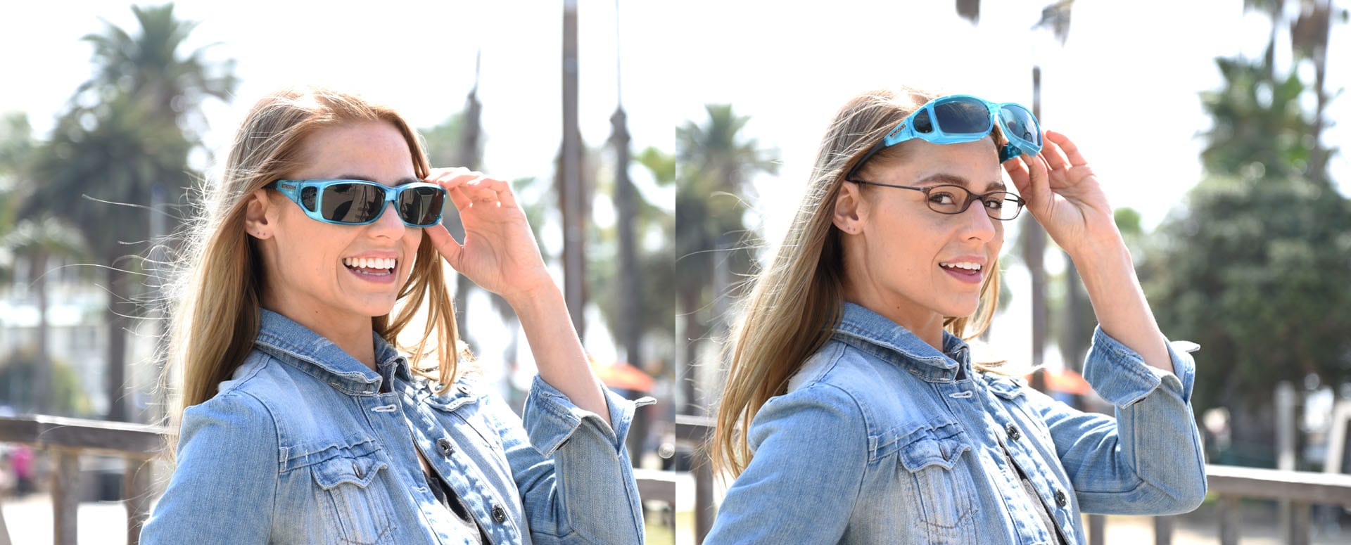 erin lifting up fitover sunglasses for slider